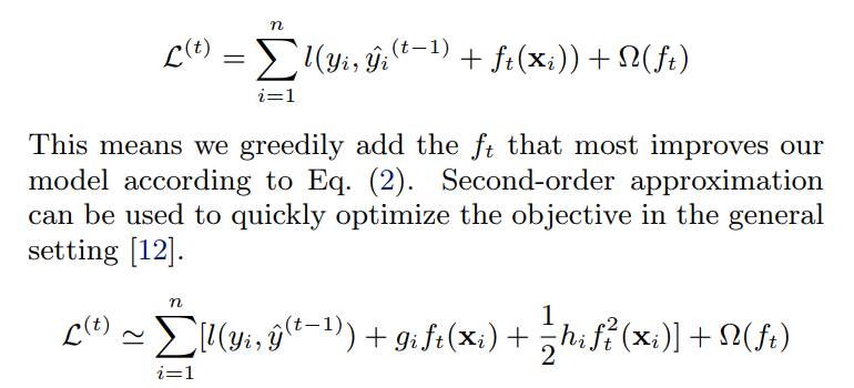 \Theta = \sum_{i=1}^n [g_i f_t(x_i) + \frac{1}{2} h_i f^2_t(x_i)] + \Omega(f_t)